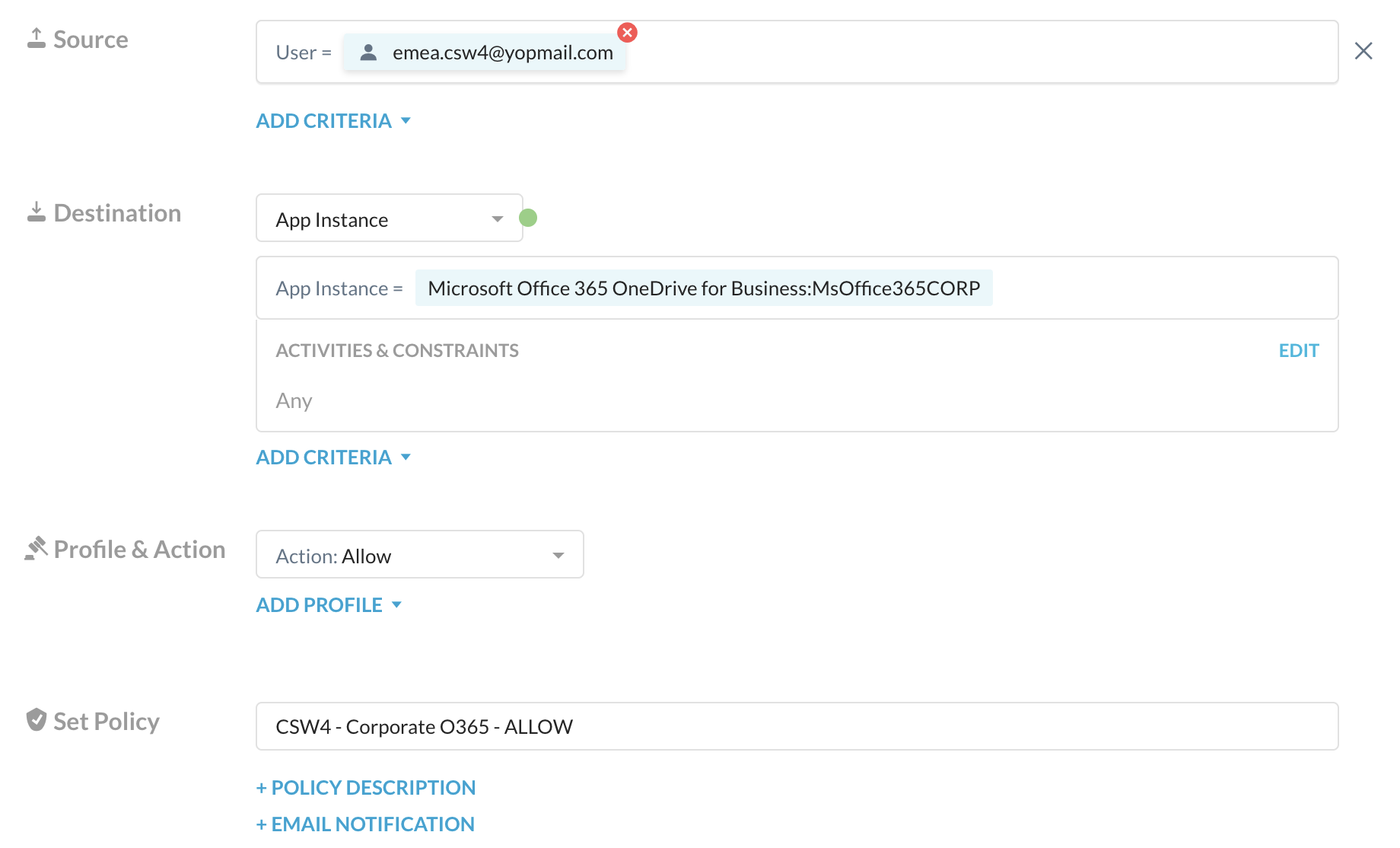 - Set Policy name: CSW[X] - Corporate O365 - Allow