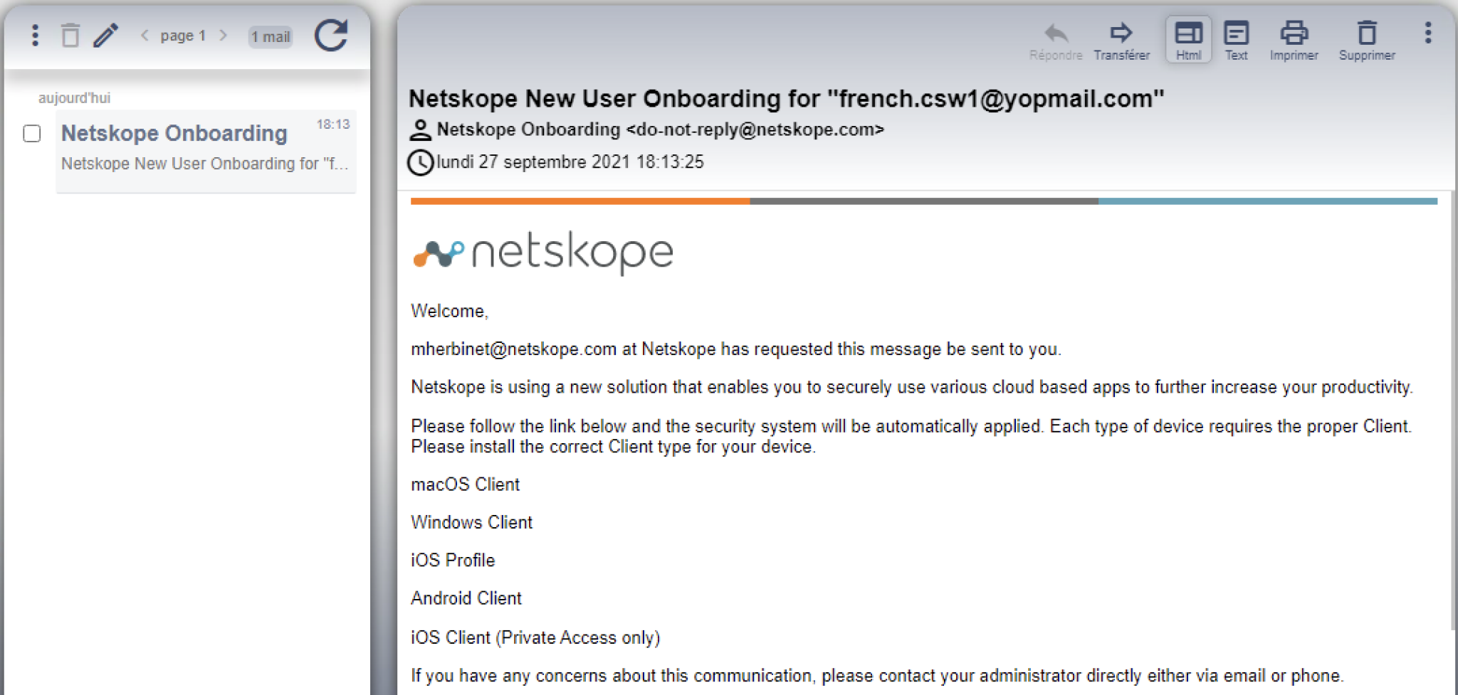 Step 5 Check your trashable email account on [https://www.yopmail.com] for the enrollment email from Netskope Onboarding <onboarding@netskope.com>.